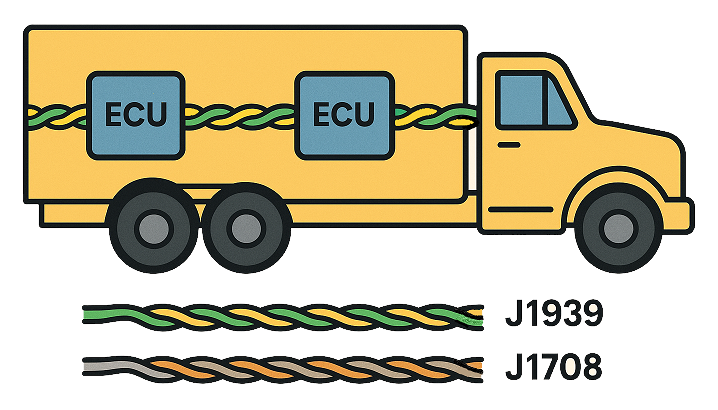 - J1708/J1587 is the slow lane for diagnostics and non-urgent data.